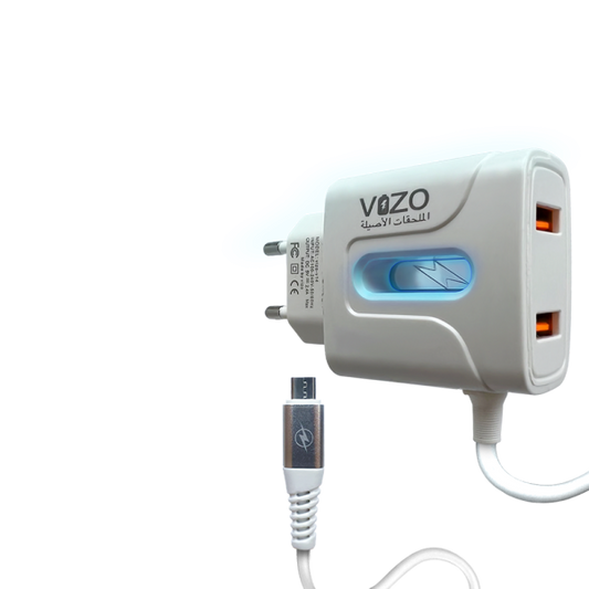 Vizo V14 Fast Charger 2.8a With Copper Connector | Android Mobile Phone Charging Adapter With Usb Data Cable